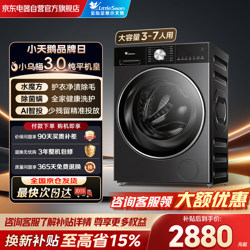 自营小天鹅(LittleSwan)滚筒洗衣机全自动家用10公斤小乌梅3.0 超薄纯平全嵌大容量TG10VE10轻享版 以旧换新补贴 京东自营