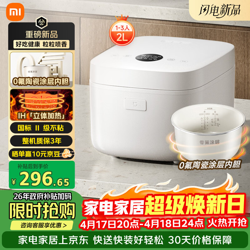 自营米家小米IH电饭煲2 健康0氟陶瓷涂层内胆 IH加热立体大旺火 24小时预约 2L适用1-3人 26min快煮1级能效