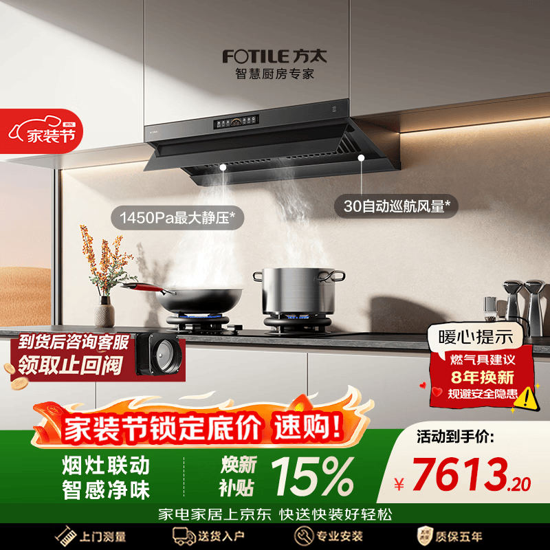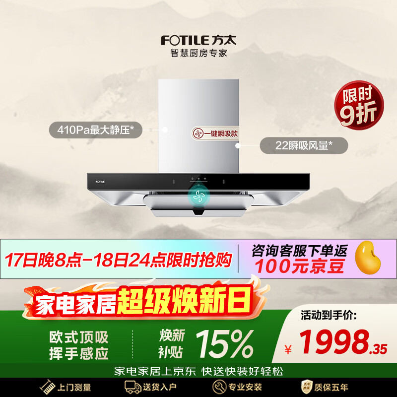 自营方太EMC5A欧式顶吸22风量 挥手感应 租房性价比【推荐TH33B】抽吸油烟机家用厨房 以旧换新