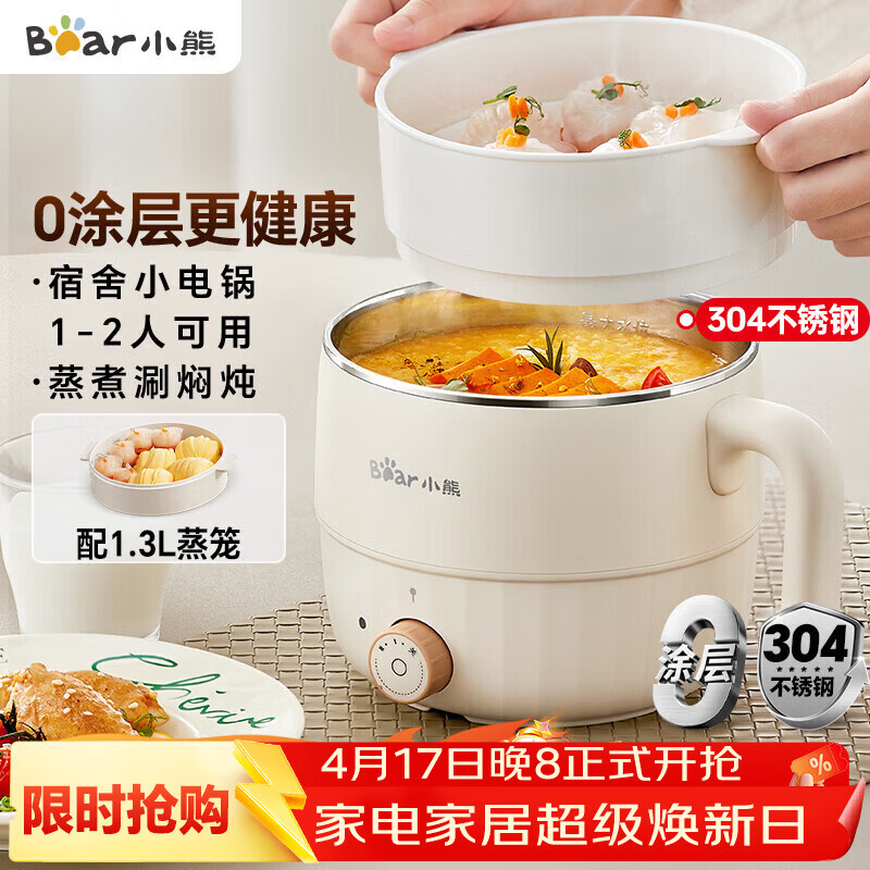 自营小熊(Bear)蒸蛋器 煮蛋器 家用多功能一体机 一键操作蒸鸡蛋羹神器 小型一人用 单双层一体机ZDQ-D12R3