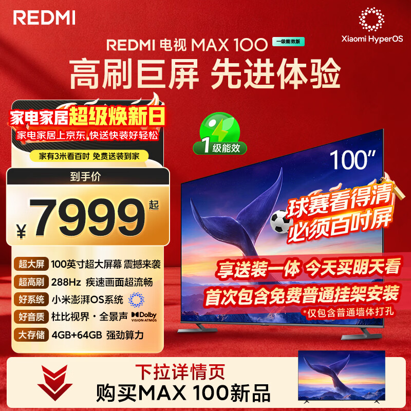 自营小米(MI)REDMI 电视 MAX100 一级能效版 100英寸 288Hz【送装一体服务】会议电视 L100RC-MAXE