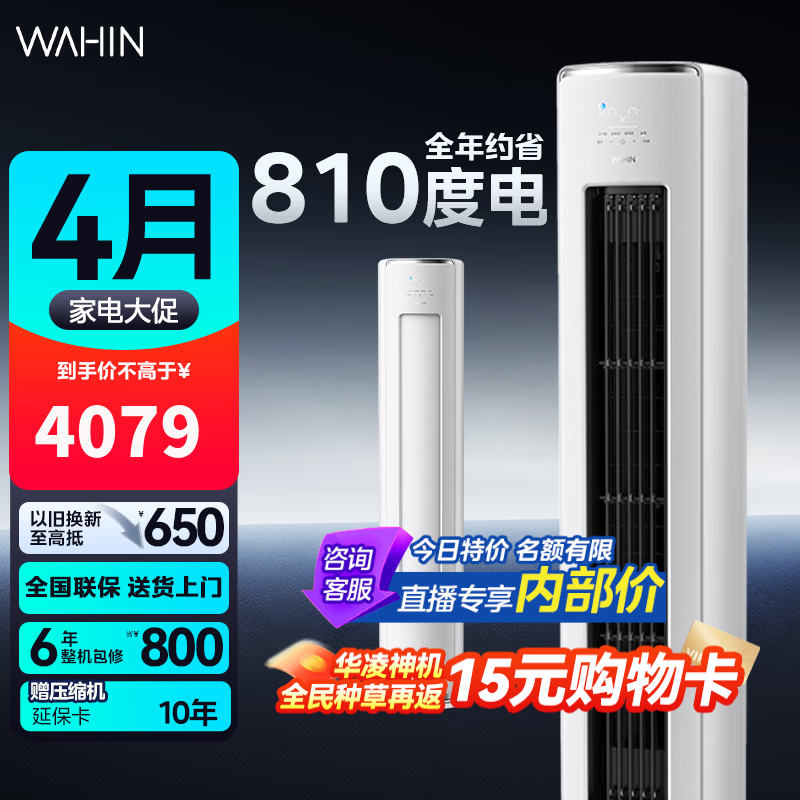华凌【大额补贴】神机二代【大风口 双排铜管】超一级能效变频冷暖挂机两用 以旧换新 神机二代 3匹 72HE1II(神机二代柜机)