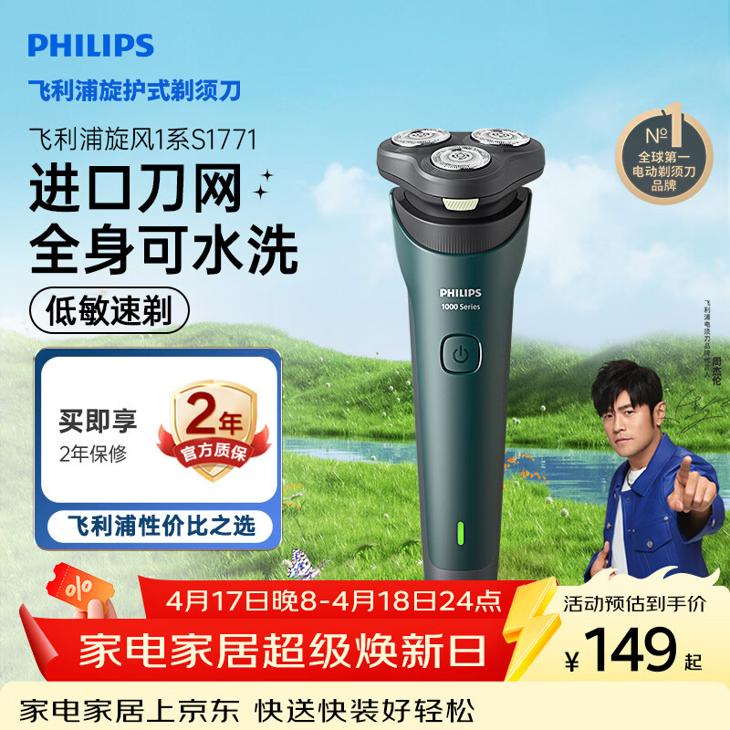 自营飞利浦电动剃须刀新一代旋风1系刮胡刀 风驰切剃3D浮动刀头 生日礼物送男生老公父亲