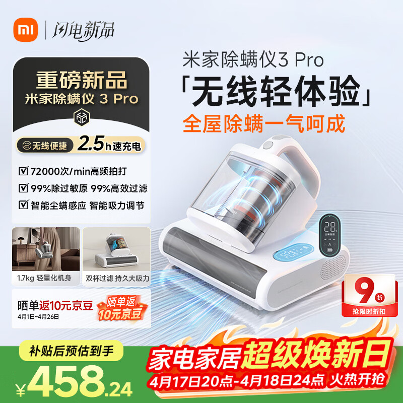 自营米家除螨仪3 Pro【旗舰新品】无线速充电 智能尘螨感应 智能吸力调节 紫外线超声波五重除螨杀菌