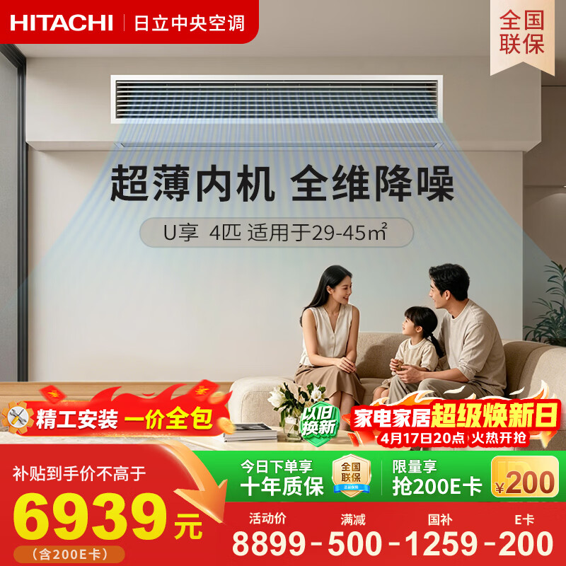 自营日立中央空调4匹U享 风管机一拖一 家用嵌入式空调一价全包一级能效冷暖 家电纯铜管 RPIZ-90HDQ1/P
