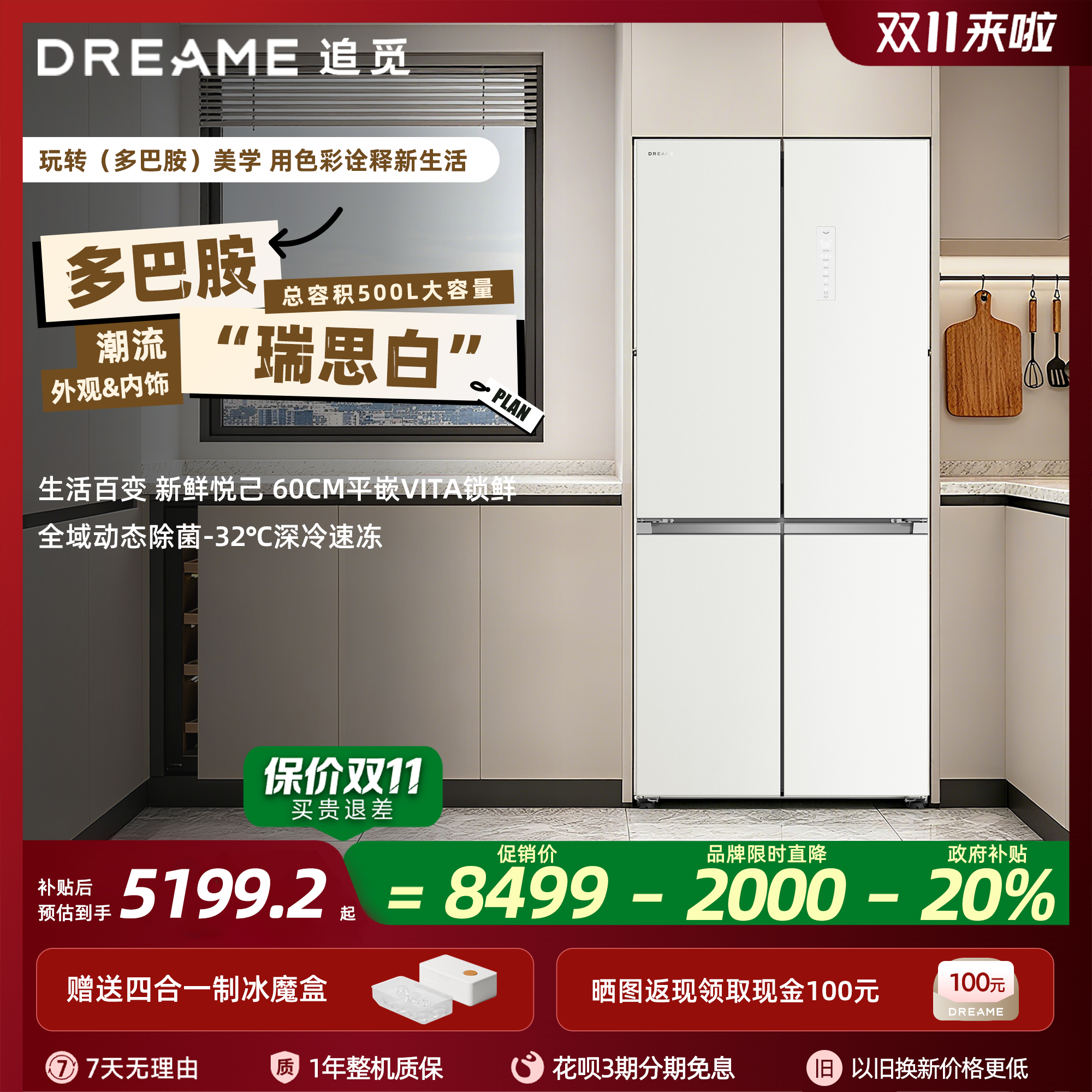 旗舰店新品 追觅多巴胺系列十字对开门500升超薄平嵌节能冰箱政府补贴