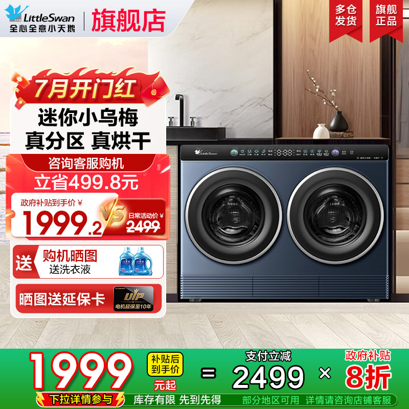 旗舰店小天鹅迷你小乌梅分区烘干一体内衣洗衣机双桶三筒官方旗舰