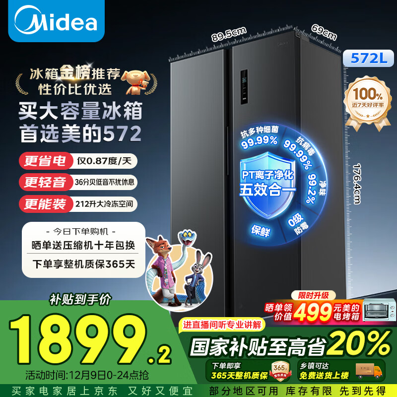 自营美的(Midea)572升对开门冰箱大容量一级能效双变频节能风冷无霜BCD-572WKPM(Q)以旧换新国家补贴
