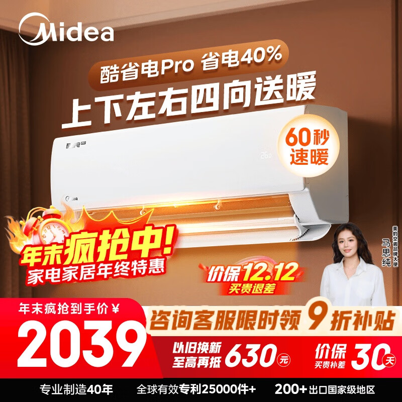 自营美的空调酷省电Ultra 大1.5匹新一级能效变频双排冷凝器【2025款】空调挂机国家补贴KFR-35GW/N8KS1-1U