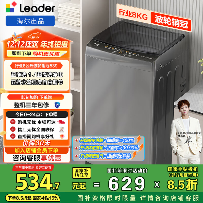 自营统帅(Leader)海尔出品 悦已波轮洗衣机 全自动家用 出租房 8公斤小型 京东自营以旧换新国家补贴 XQB80-L539