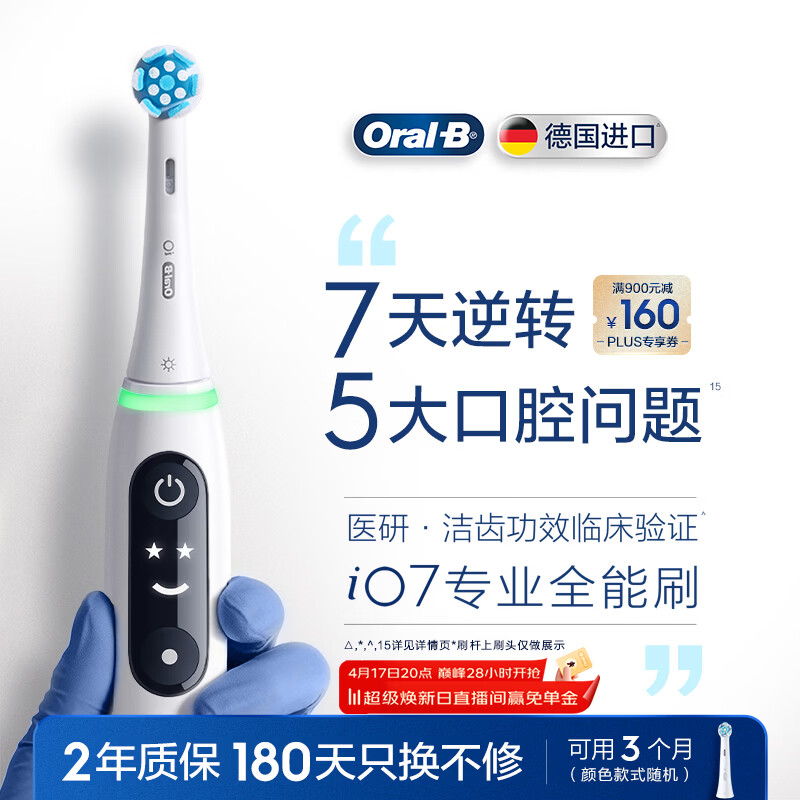 自营欧乐B德国进口智能电动牙刷成人iO7专业全能刷白色刷头*1深度清洁护龈京东自营热卖榜情侣送礼生日礼物