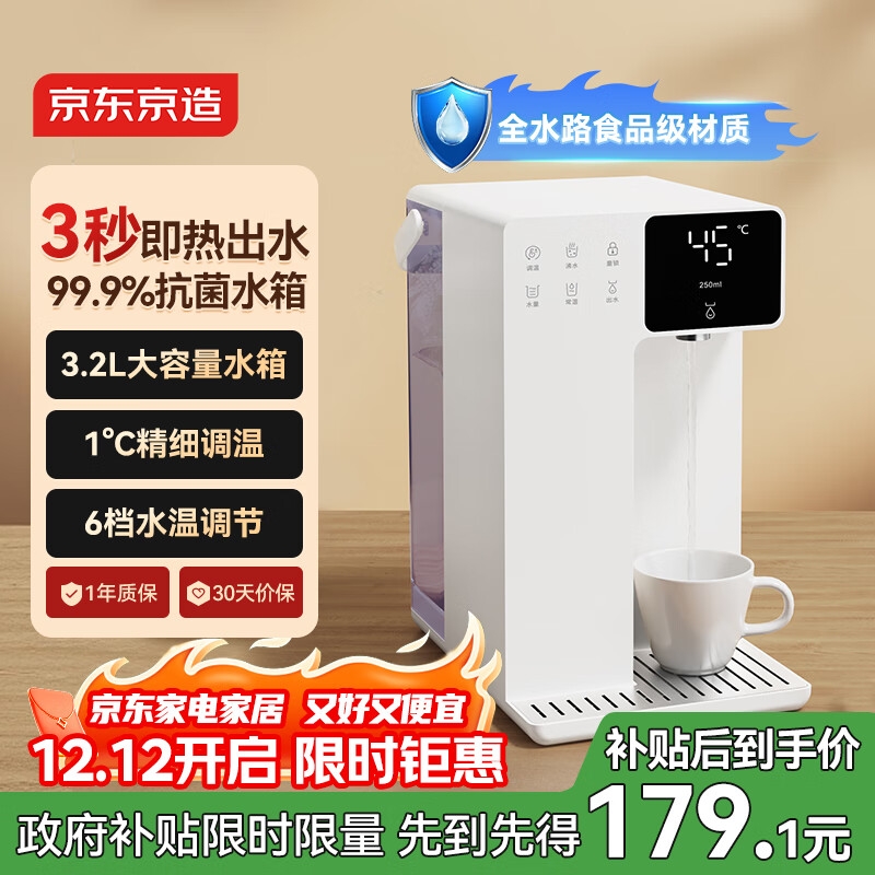 自营京东京造白犀即热式饮水机家用台式小型桌面饮水烧水直饮机烧水壶 3秒速热 6段控温 3.2L抗菌水箱