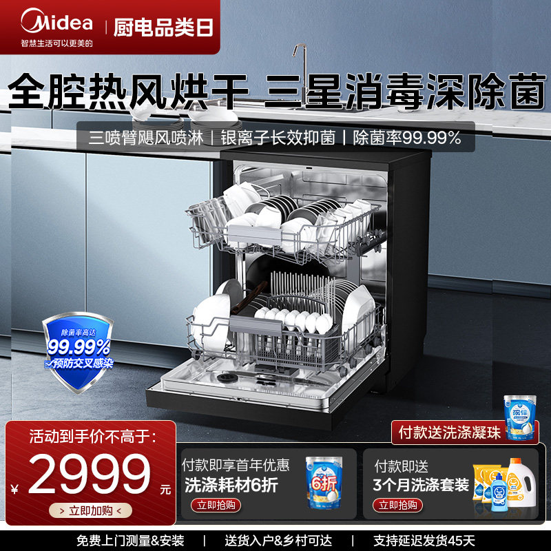 旗舰店美的骄阳洗碗机全自动家用消毒灭菌烘干嵌入式可洗锅一体14套RX50
