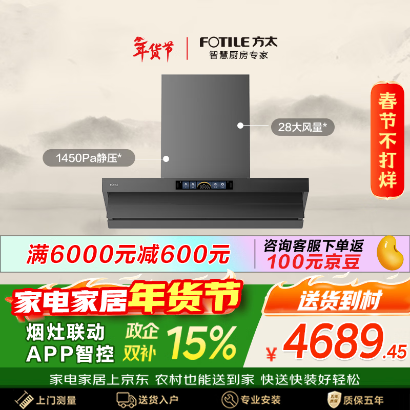 自营方太02-JCD10TA侧吸24风量 京东限定 风魔方升级 小尺寸【推荐灶TF27B】抽吸油烟机家用厨房 以旧换新