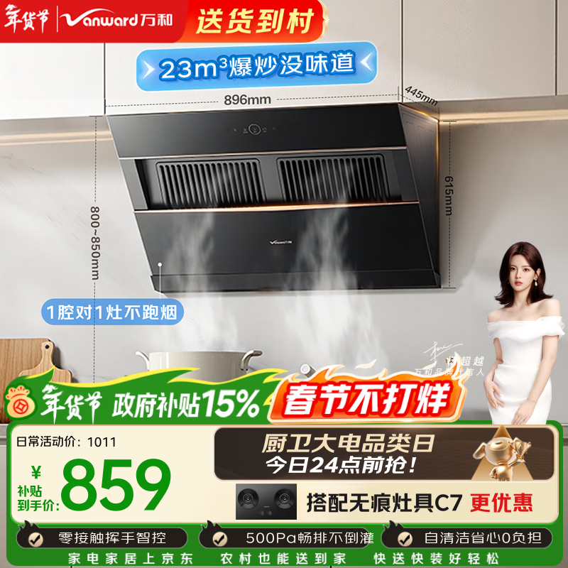 自营万和【小双翼J525S Pro·1腔对1灶】侧吸抽排家用23风量爆炒一级能效自清洗家电可配燃气灶油烟机