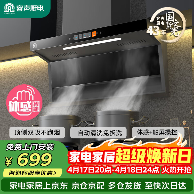 自营容声油烟机抽油烟机家用吸油烟机大吸力顶侧双吸自动清洗一级能效抽烟机CXW-368-Q32R1