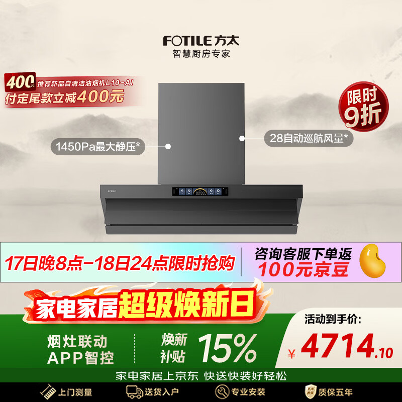 自营方太V1S-G顶侧一体平嵌吸油烟机 28风量 烟灶联动【推荐购新品L10-AI自清洁油烟机】