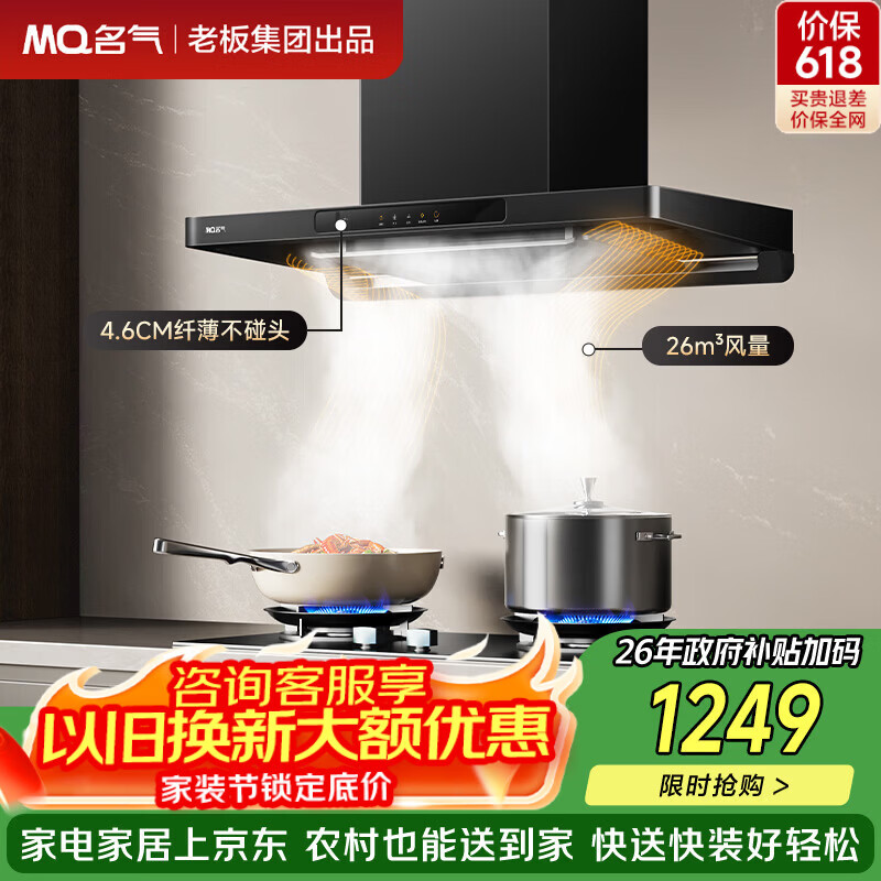 自营名气(MQ)纤薄欧式双子星顶吸式抽吸排油烟机26风量家用大吸力吸烟机1200pa以旧换新上门安装Q10搭配燃气灶