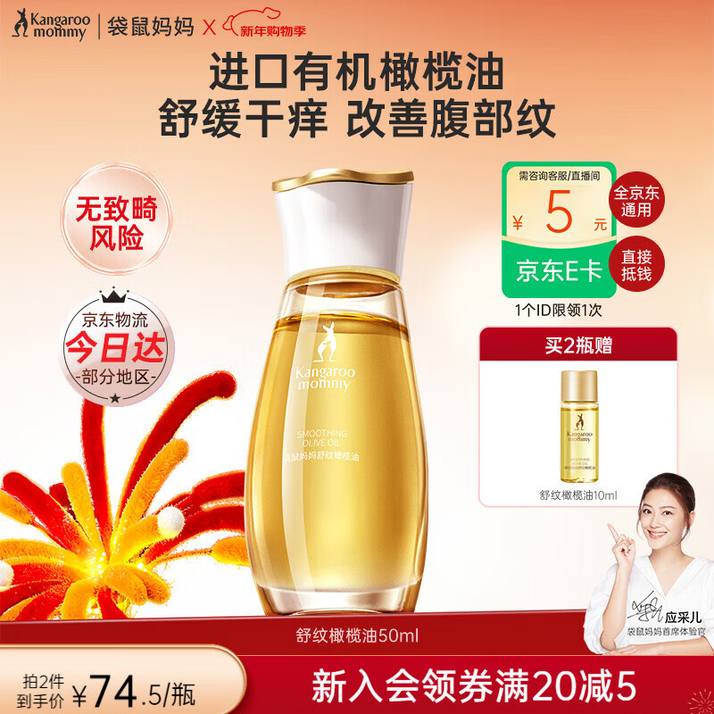 旗舰店袋鼠妈妈准孕妇专用橄榄油按摩抗皱精油舒缓淡化纹路紧致修护妊娠油护肤品 【明星同款爆品】橄榄油50ml