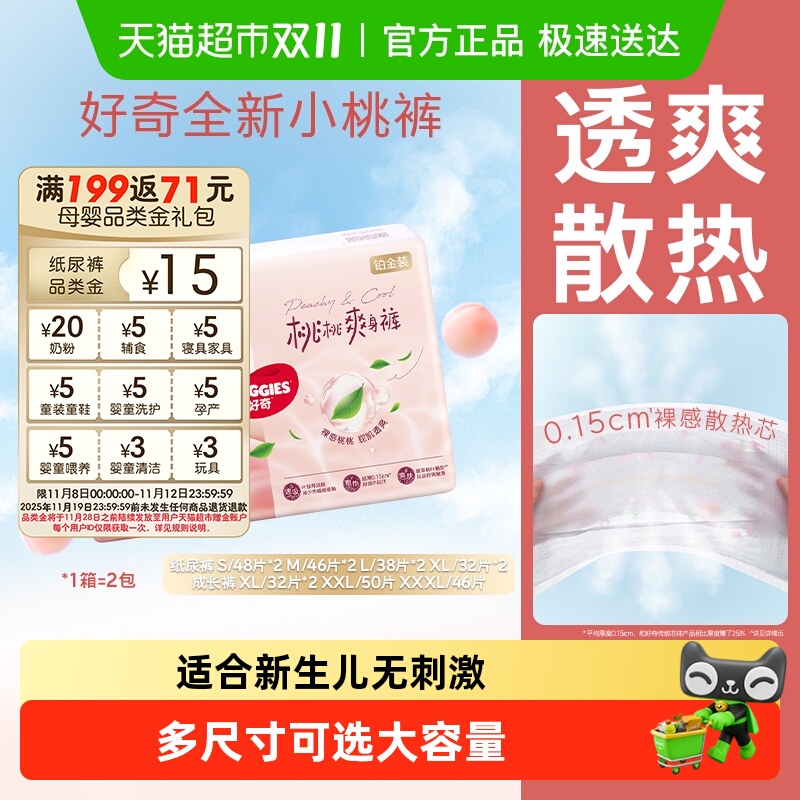 好奇铂金装纸尿裤S96/M92/L76/XL64成长裤XL64/XXL50/XXXL46超薄