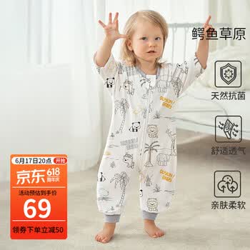 旗舰店欧孕(OUYUN)婴儿睡袋宝宝春夏中袖50支纯棉分腿儿童防踢被 鳄鱼草原 S码 建议身高60-80cm(6-18个月)