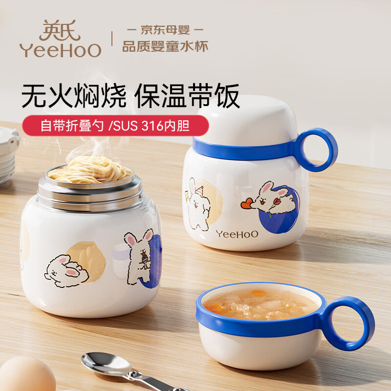 自营英氏(YEEHOO)儿童保温焖烧杯饭盒带碗带勺子保温桶超级保温密封罐不锈钢婴幼儿