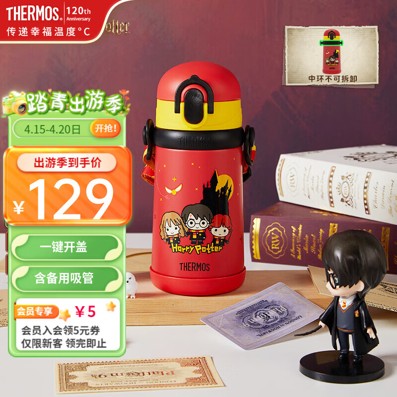 旗舰店膳魔师(THERMOS)儿童保温杯大容量直饮水杯不锈钢杯学生吸管杯运动水壶送礼礼物 红色吸管杯 400ml (2套吸管)