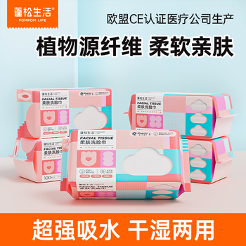 旗舰店蓬松生活绵柔巾一次性洗脸巾干湿两用洗面巾卸妆柔巾洁面巾 柔肤洗脸巾100抽/包 5包