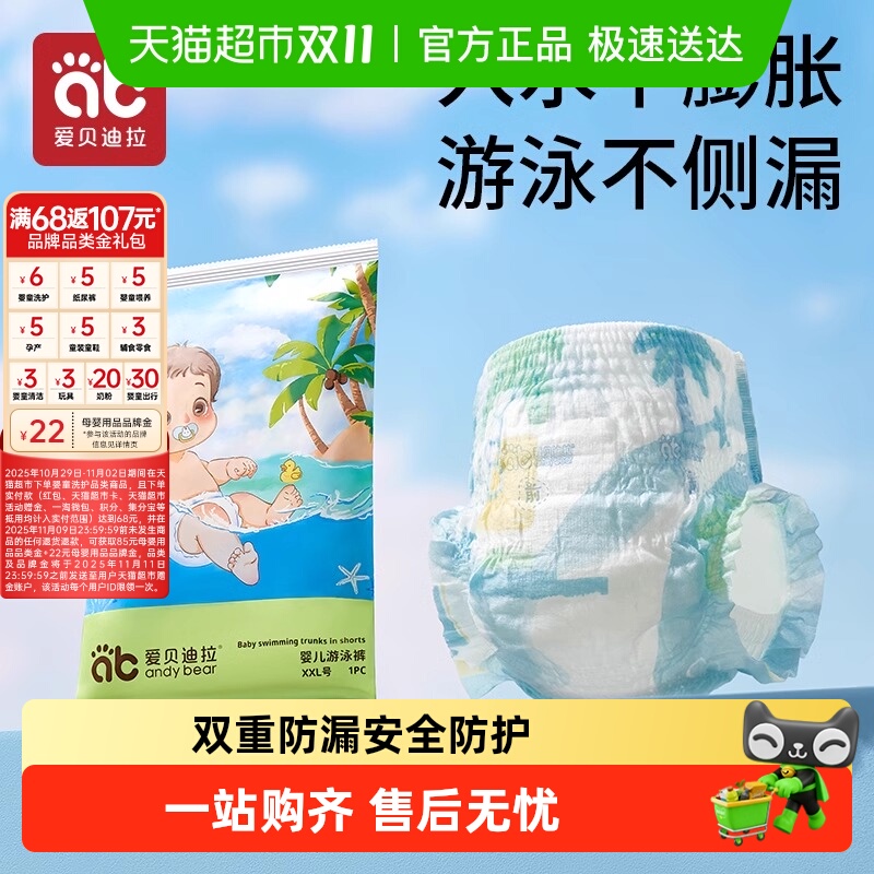 爱贝迪拉婴儿一次性游泳裤纸尿裤防水拉拉裤儿童男宝宝女宝尿不湿