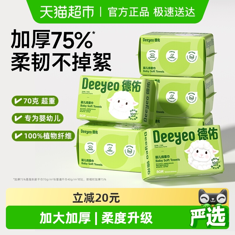 【下拉享补贴】德佑婴儿绵柔巾加厚干湿两用宝宝专用一次性洗脸巾