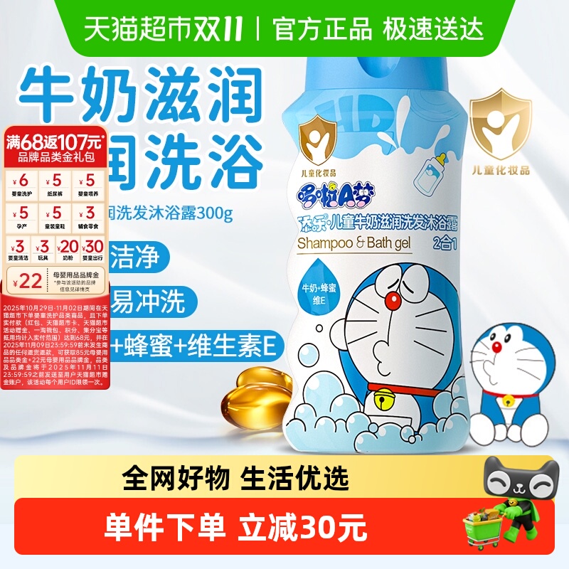 添乐儿童洗发水沐浴露二合一 牛奶滋润洁净易冲洗旅行便携装