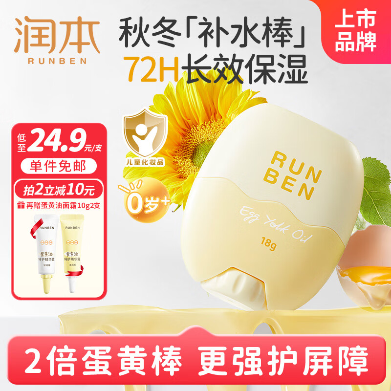 旗舰店润本(RUNBEN)儿童面霜婴儿蛋黄油皴裂棒宝宝秋冬滋润保湿霜身体乳补水润肤乳 蛋黄油面霜棒 18g 【王牌爆款】