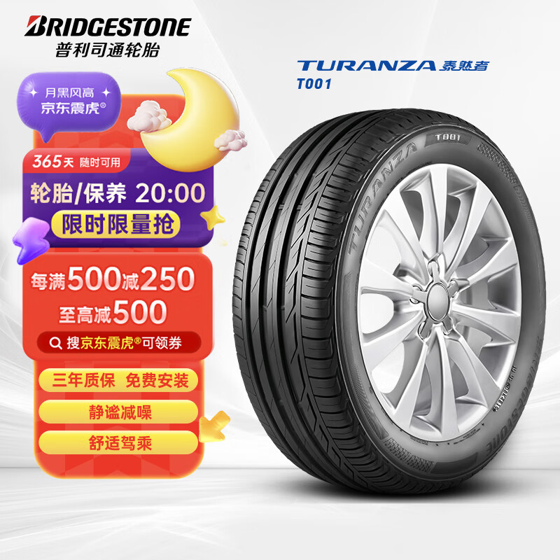 自营普利司通汽车轮胎 215/55R17 98W XL T001【月黑风高】