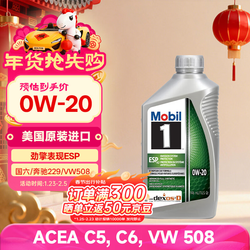 自营美孚1号全合成机油 劲擎表现ESP 0W20 国六B/C6 0.946L 美国原装