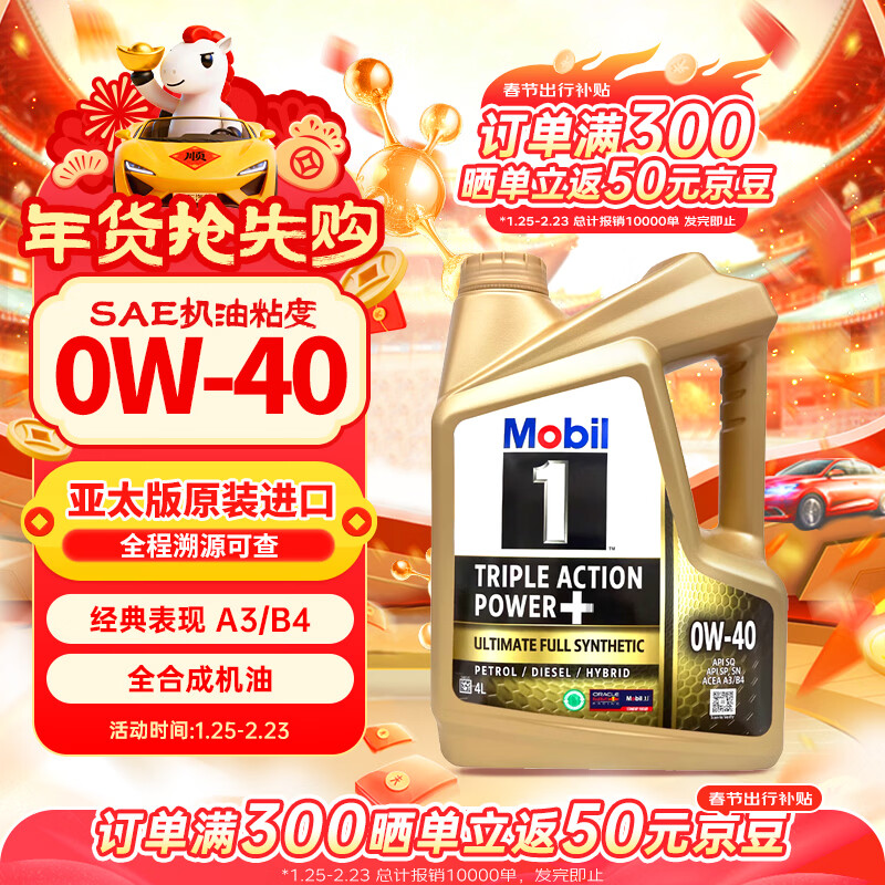 自营美孚(Mobil)金美孚0W40机油4L+机滤+空调滤+空气滤+工时单次大保养12个月有效