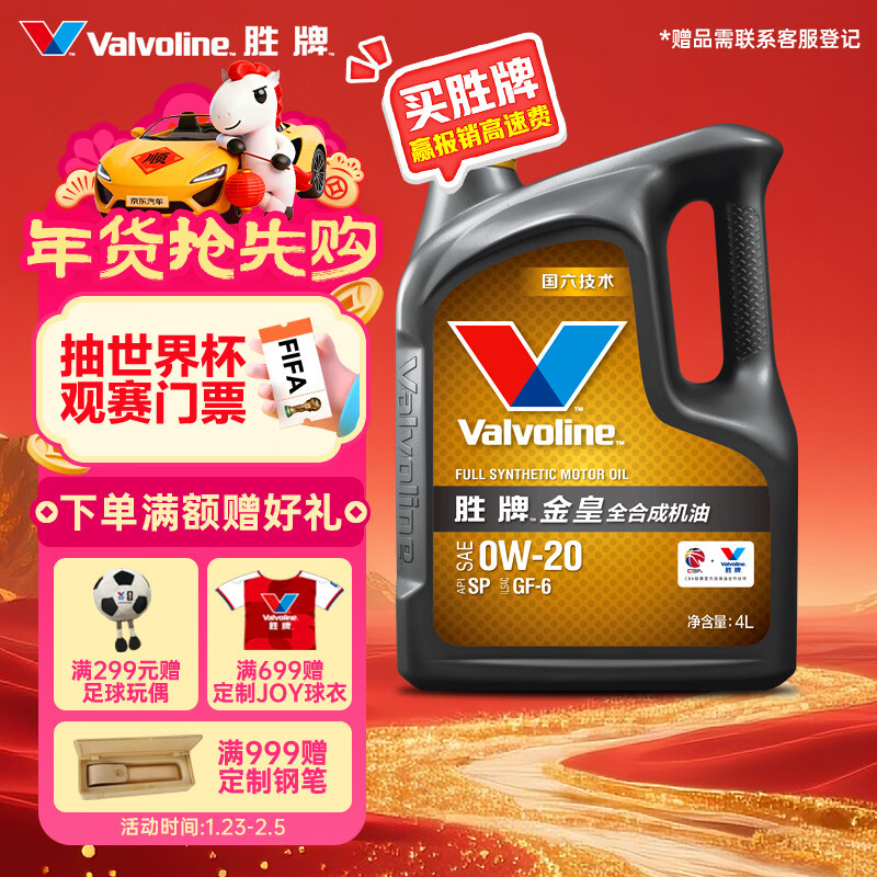 自营胜牌金皇CBA联名 全合成机油 汽机油 发动机润滑油0W-20 SP级 GF-6 4L