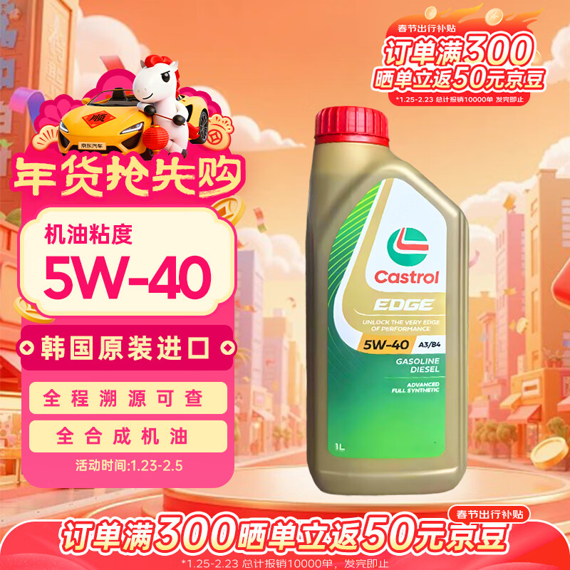 自营嘉实多(Castrol)极护 钛流体全合成机油 5W-40 SQ 1L/桶 韩国进口