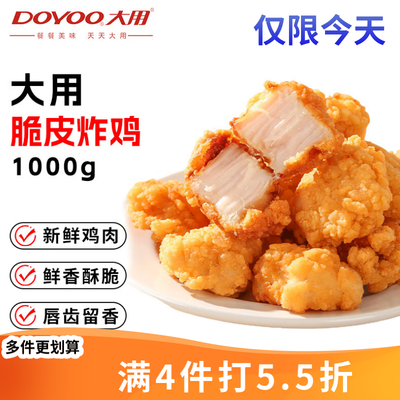 自营大用韩式脆皮炸鸡2斤冷冻 炸鸡半成品油炸小吃 空气炸锅食材 清真