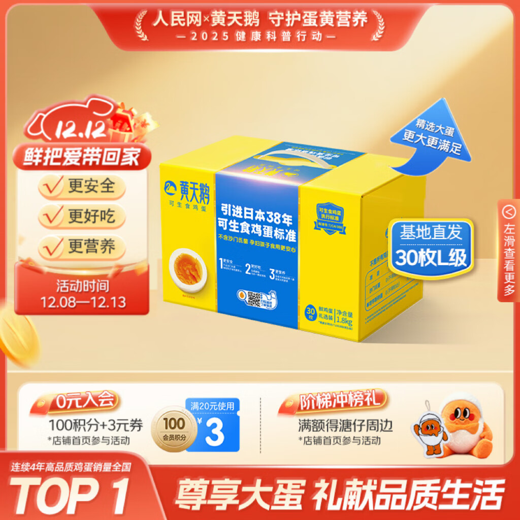 百亿补贴【黄天鹅鸡蛋】18枚M-级礼盒装可生食新鲜无菌鸡蛋48g/枚新鲜直达
