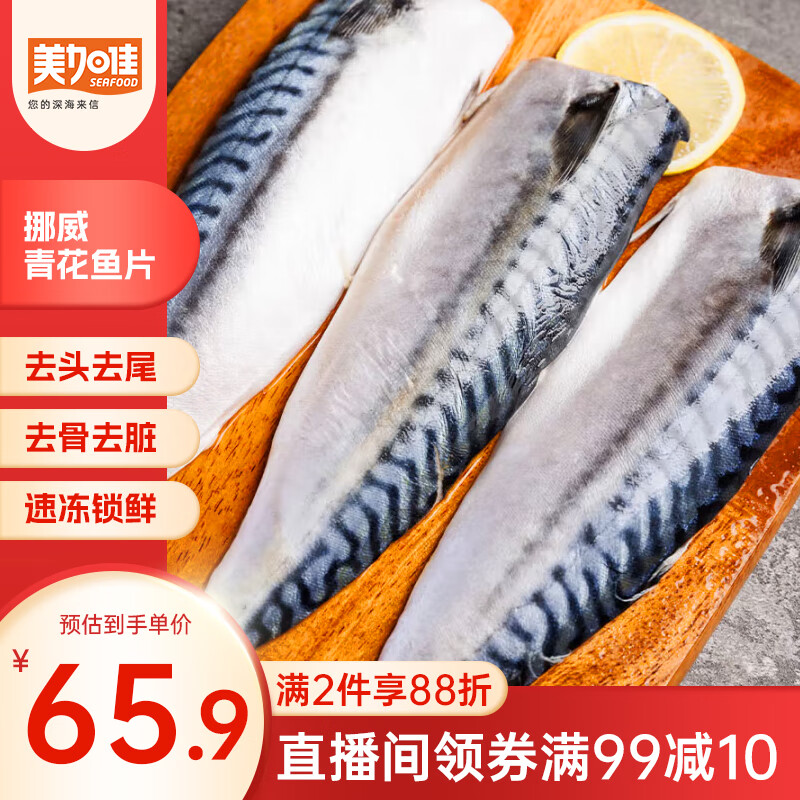 自营美加佳挪威青花鱼片净重2斤(8-10片)独立包装 去头去尾去脏