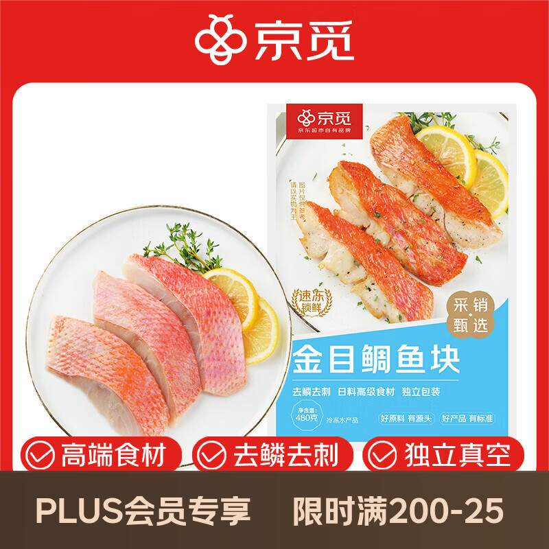 自营京觅 新西兰金目鲷鱼块480g(约8块) 斜切带皮去刺 单片真空春节也送货