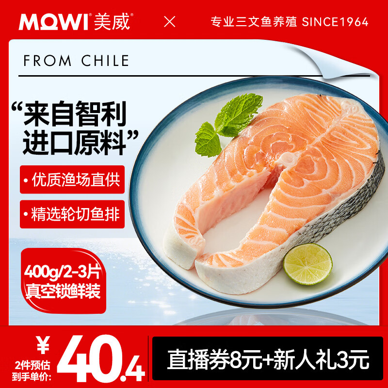 自营美威 冷冻智利轮切三文鱼排2-3片净重400g 大西洋鲑鱼 海鲜水产鱼类