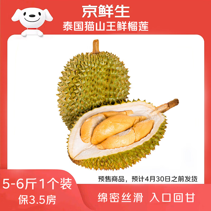 自营京鲜生泰国进口猫山王鲜榴莲净重5-6斤1个装 新鲜水果 源头直发