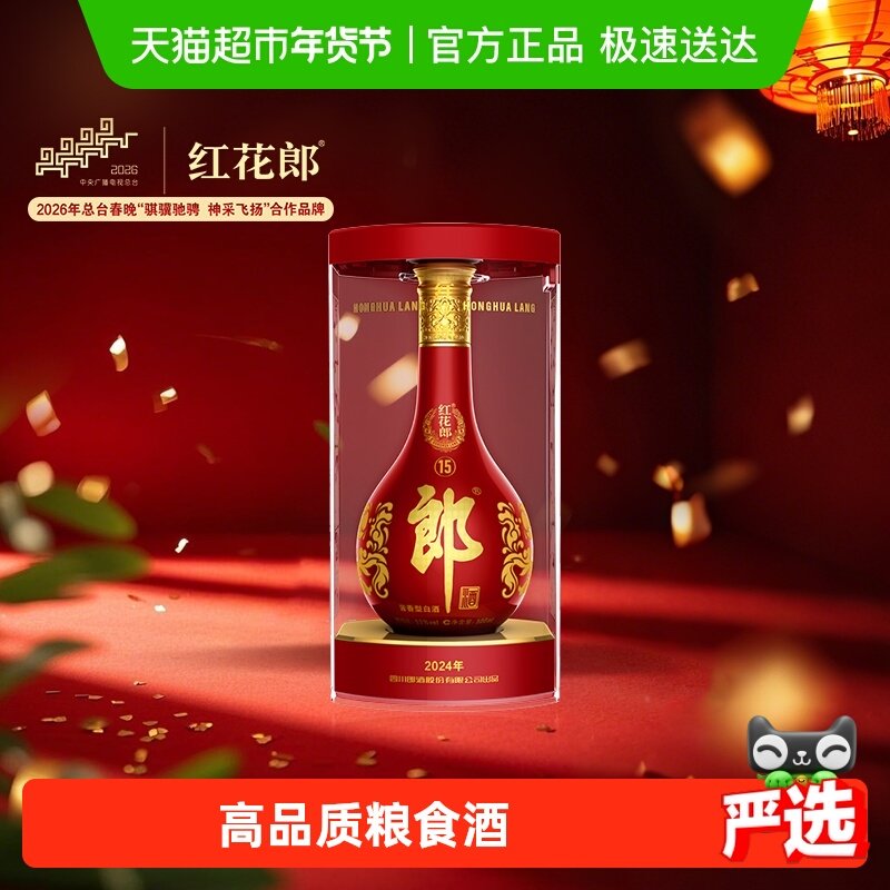 自营郎酒 红花郎15 酱香型白酒 53度 500ml*1 单瓶装 年货送礼