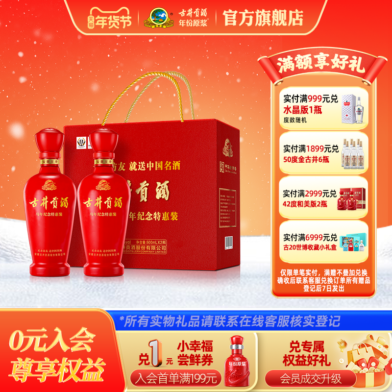 旗舰店【年货新品】古井贡酒2026马年特惠纪念装50度500mL*2瓶手提礼盒