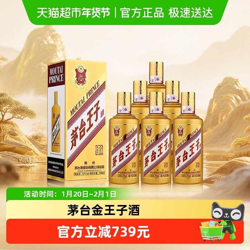 茅台王子酒金王子53度500ml*6整箱装 酱香型白酒送礼自饮jz