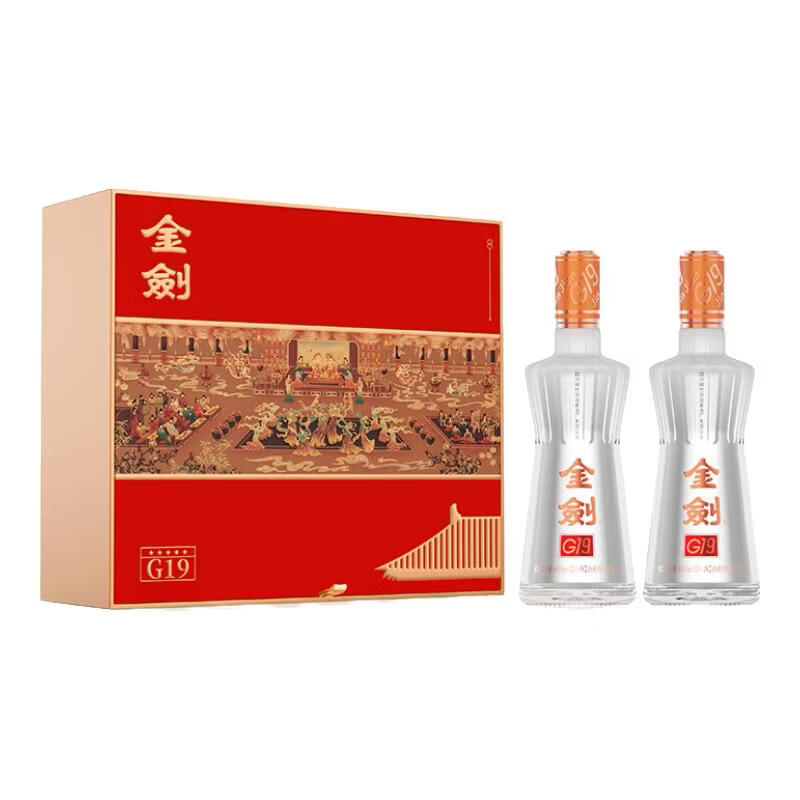 旗舰店剑南春出品 浓香型 白酒 52度 金剑G19礼盒 纯粮酒 送礼酒 52度 480mL 2瓶 金剑G19礼盒
