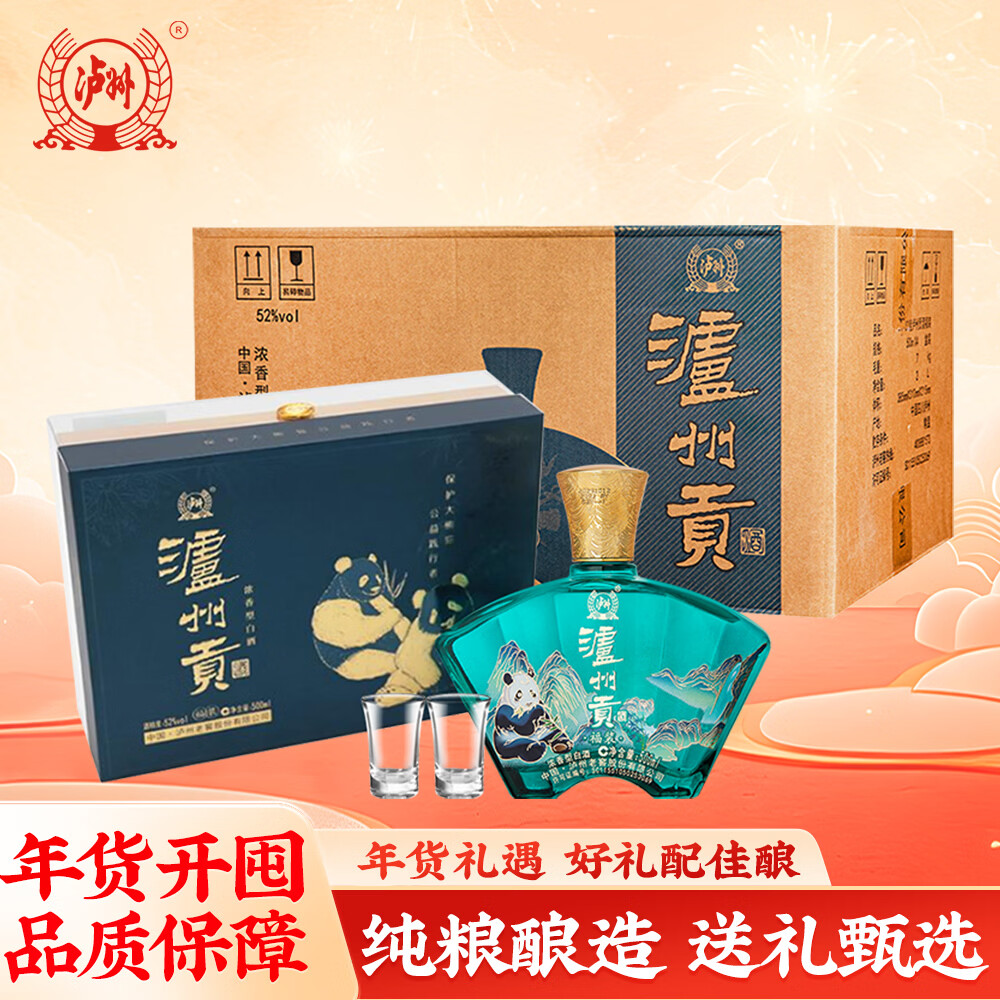 自营泸州老窖52度浓香型纯粮白酒 泸州贡福装 500ml*4盒带酒杯 宴请过年送礼