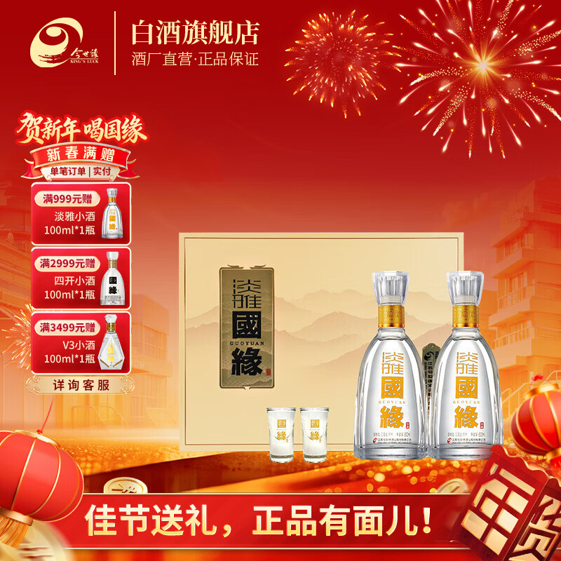 旗舰店今世缘国缘淡雅礼盒 送礼商务宴请节日白酒江苏 42度 500mL 2瓶 礼盒装