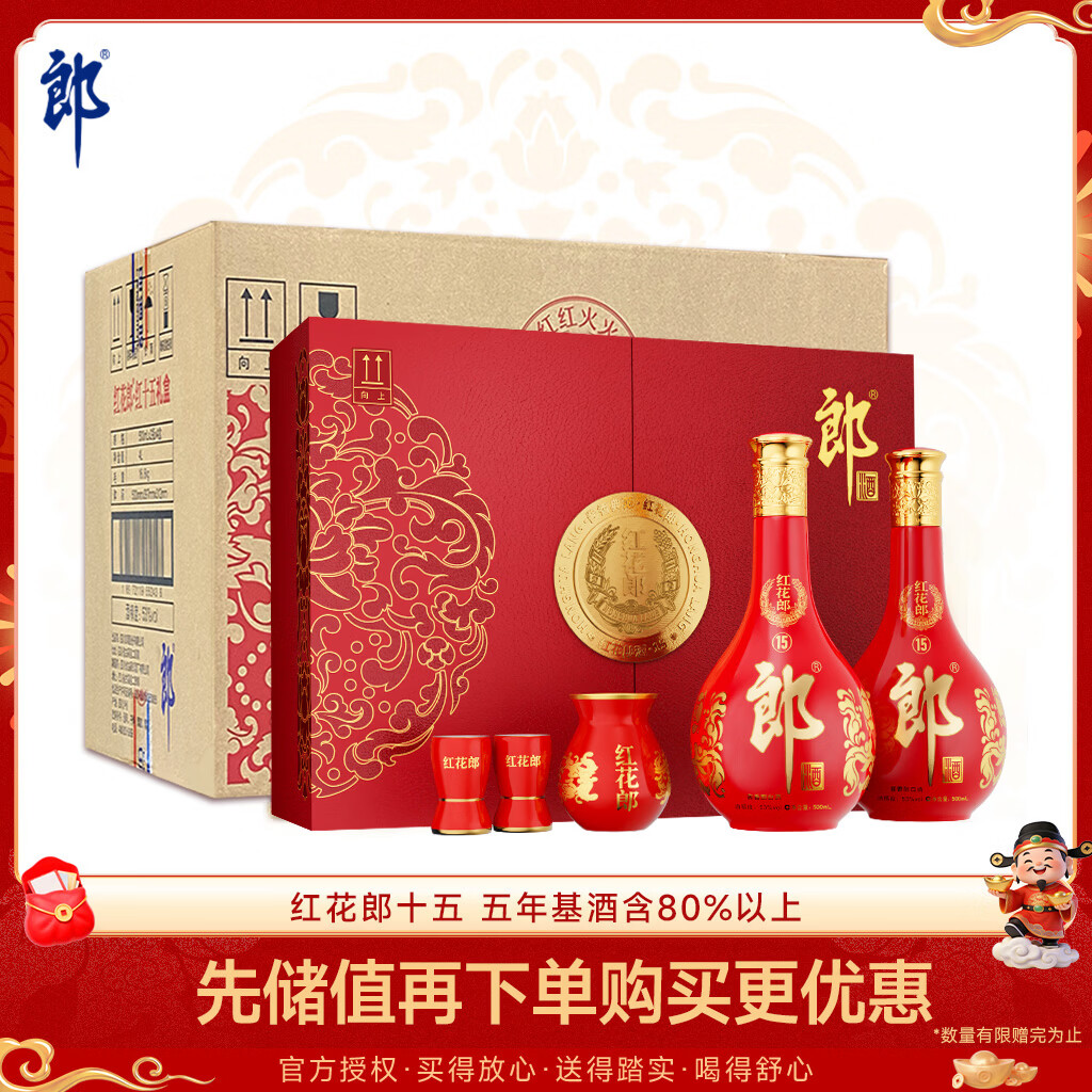 自营郎酒红花郎15 白酒 酱酒 53度 500ml*2 双瓶装 婚宴喜酒 2024版